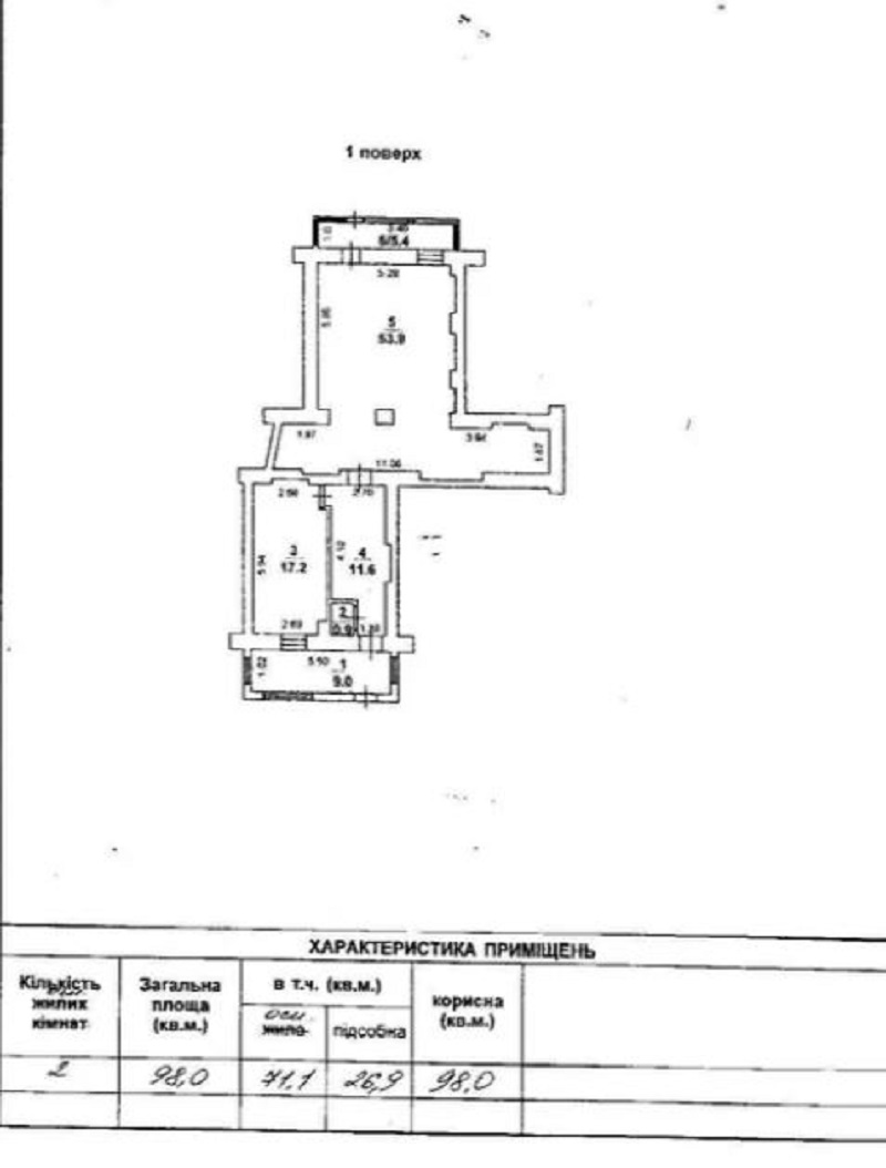 - Площа: 98/71/27 м²