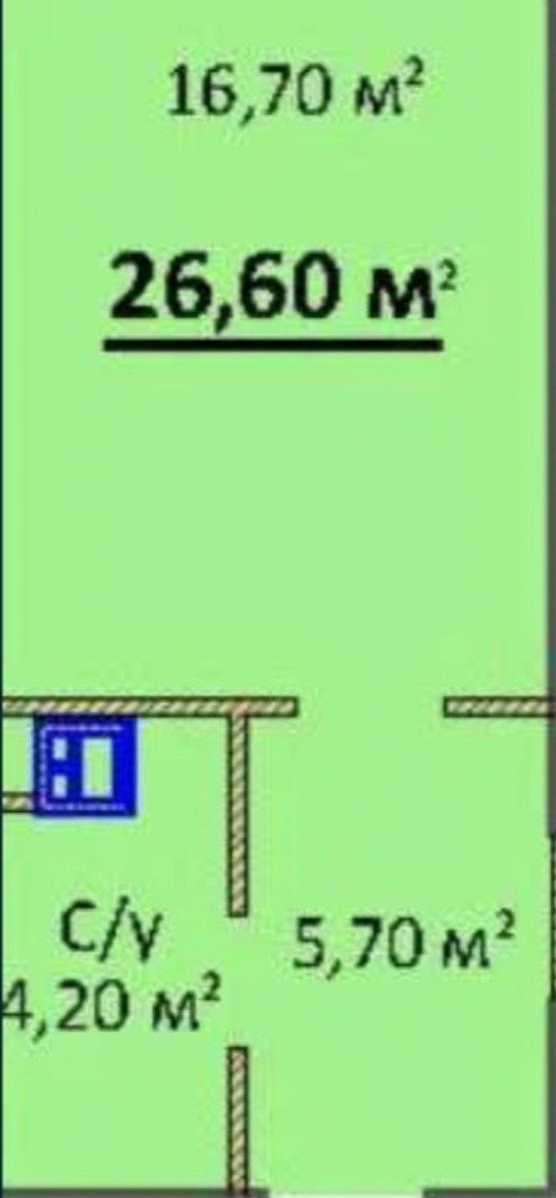 - Площа: 26/8/16 м²