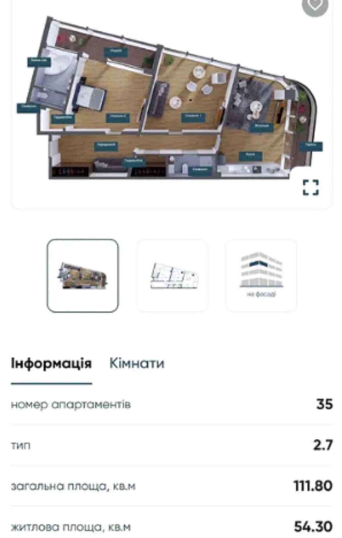- Площадь: 112/54/30 м²