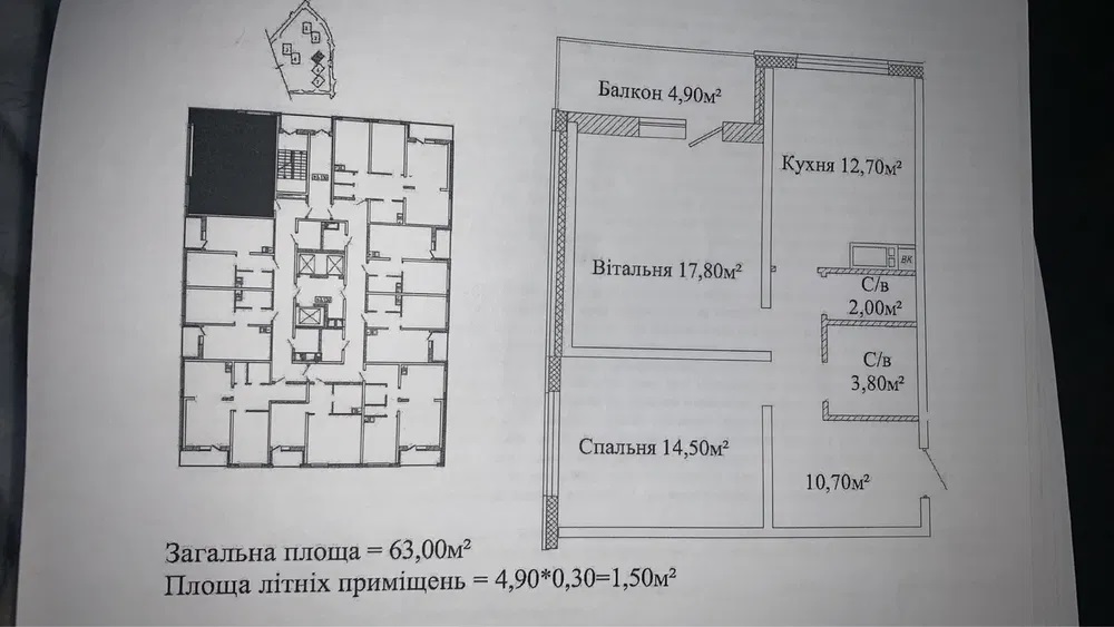 - Площадь: 63/33/13 м²