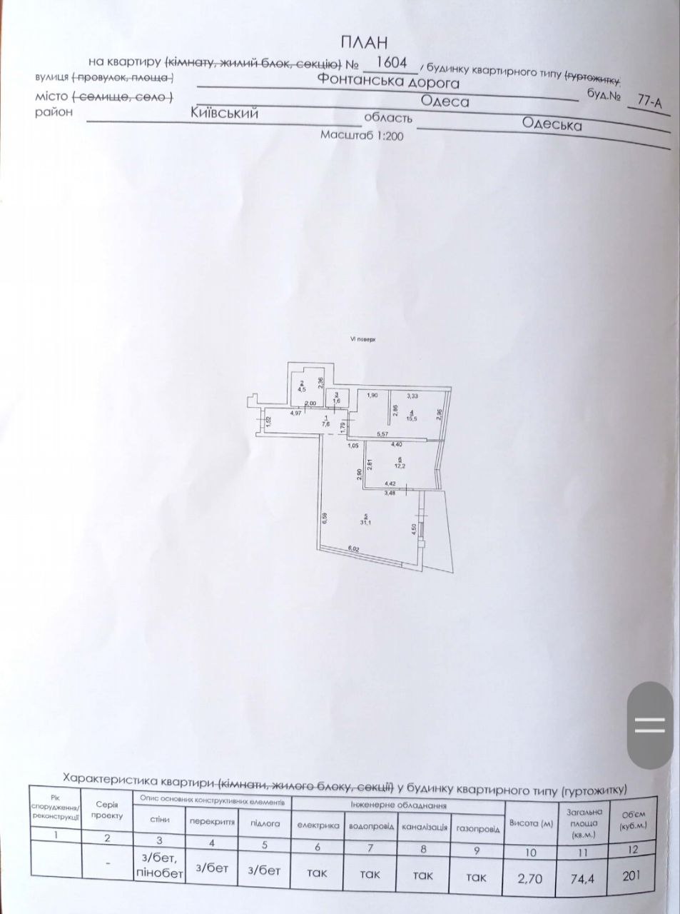 - Площадь: 74/28/31 м²