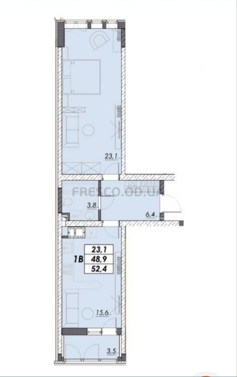 - Площадь: 53/37/16 м²