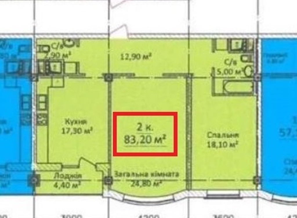 - Площадь: 83/43/17 м²