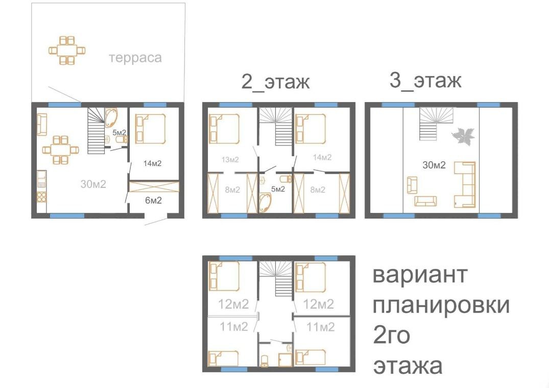 - Площадь: 135/80/30 м²