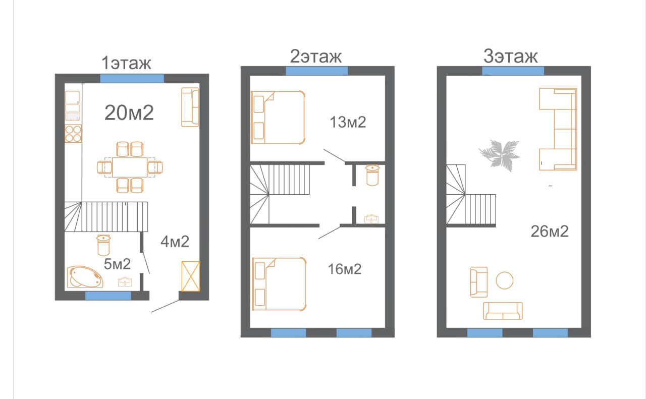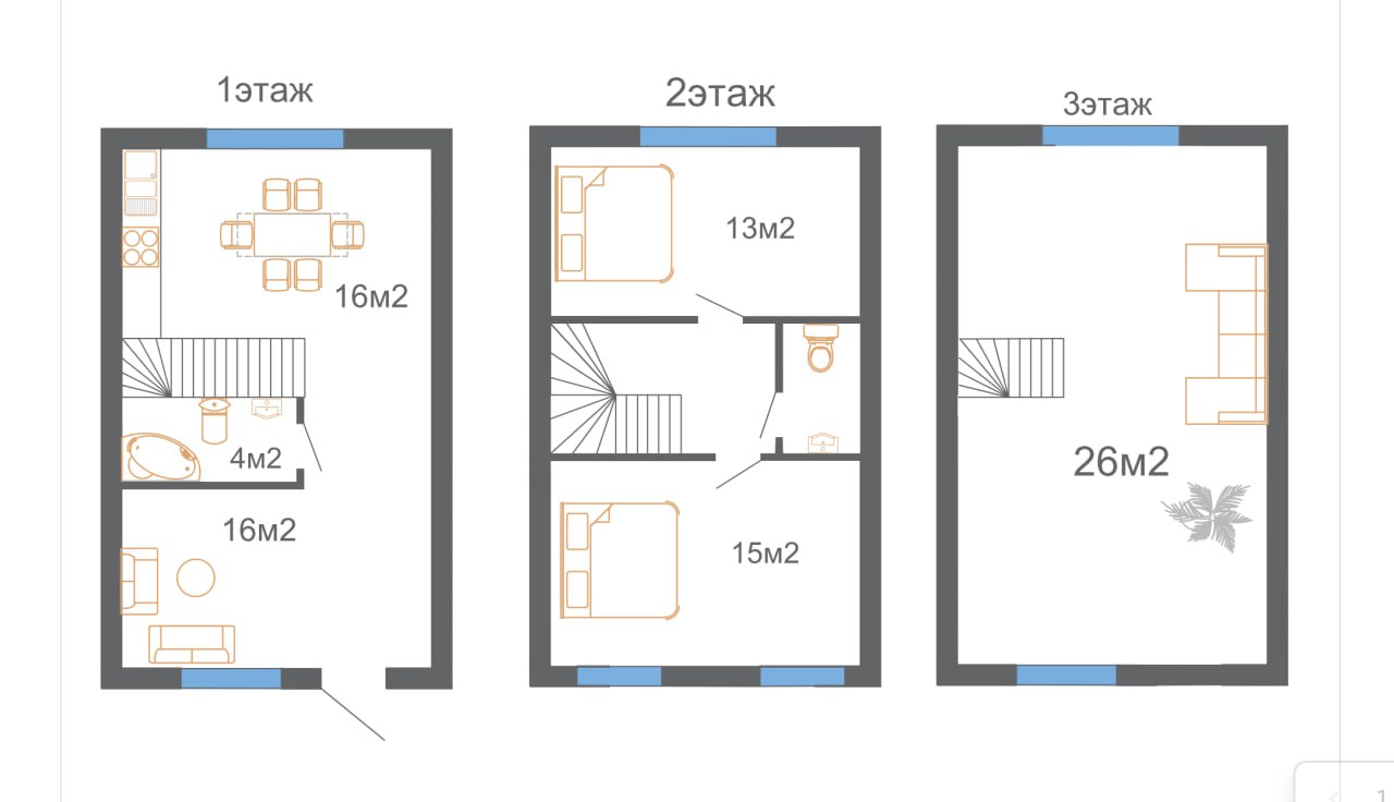 - Количество комнат: 3