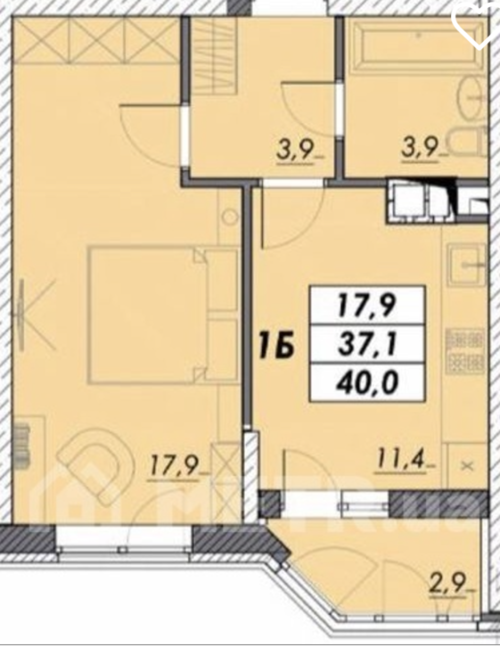 • Количество комнат: 1