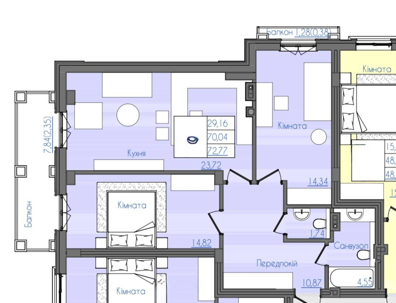 • Площадь: 72/30/24 м²