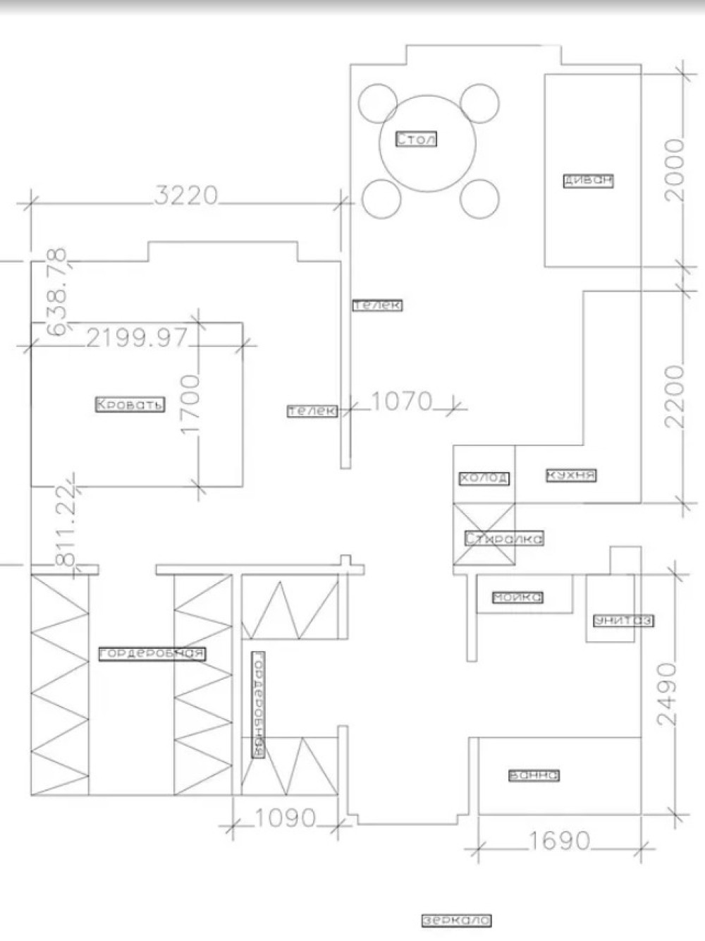 - Площадь: 43/20/15 м²
