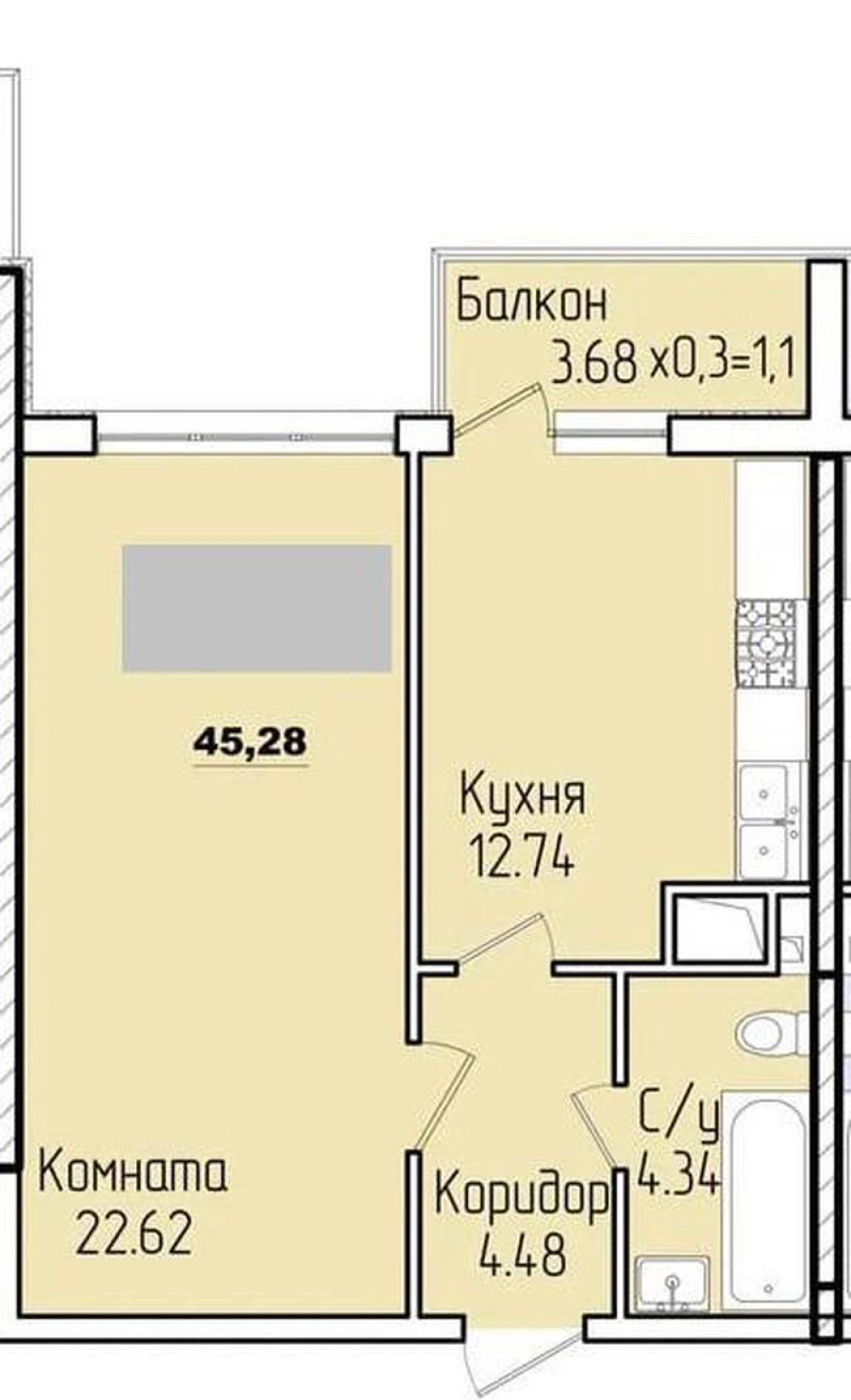 - Количество комнат: 1
