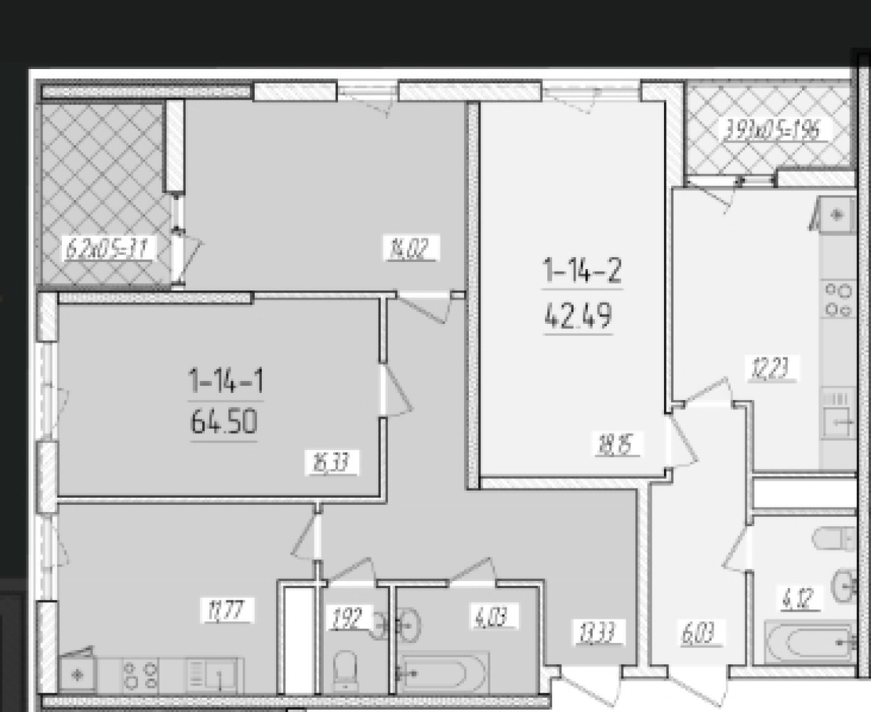 - Площадь: 64/30/12 м²