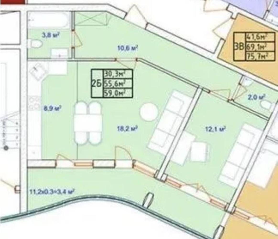 - Количество комнат: 2