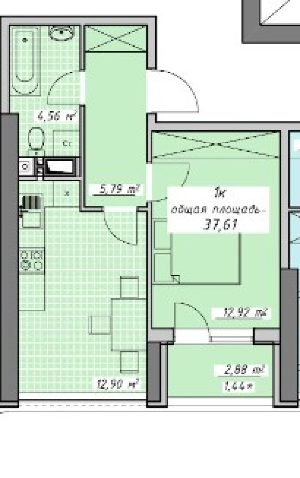 - Количество комнат: 1