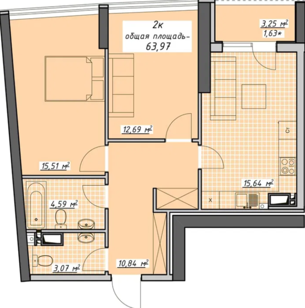 - Количество комнат: 2