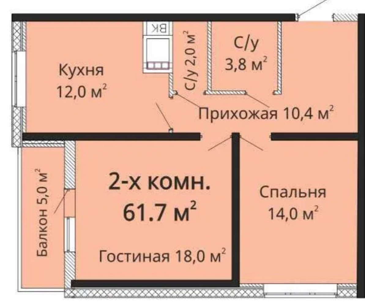 - Количество комнат: 2