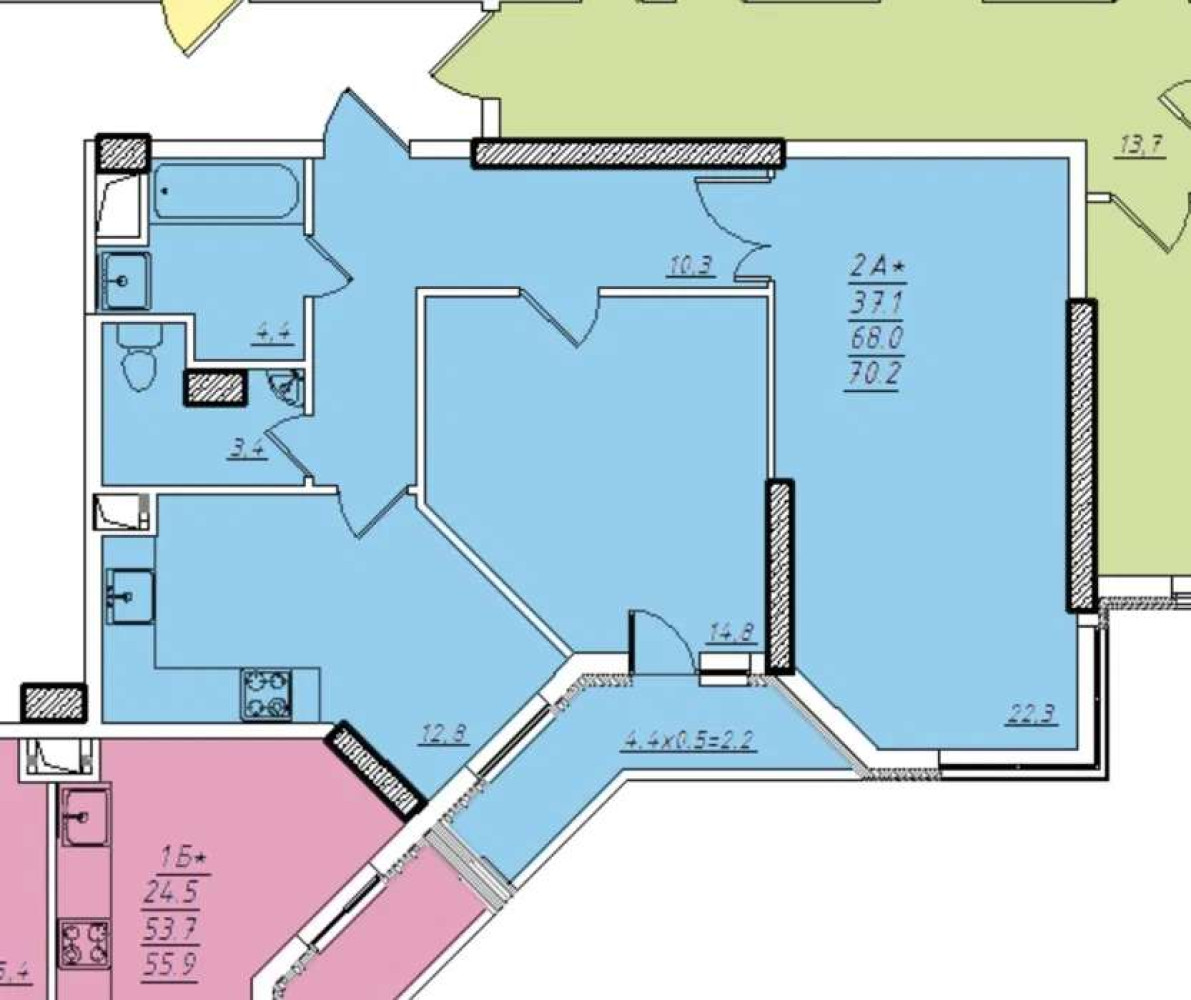 - Площадь: 70/40 м²