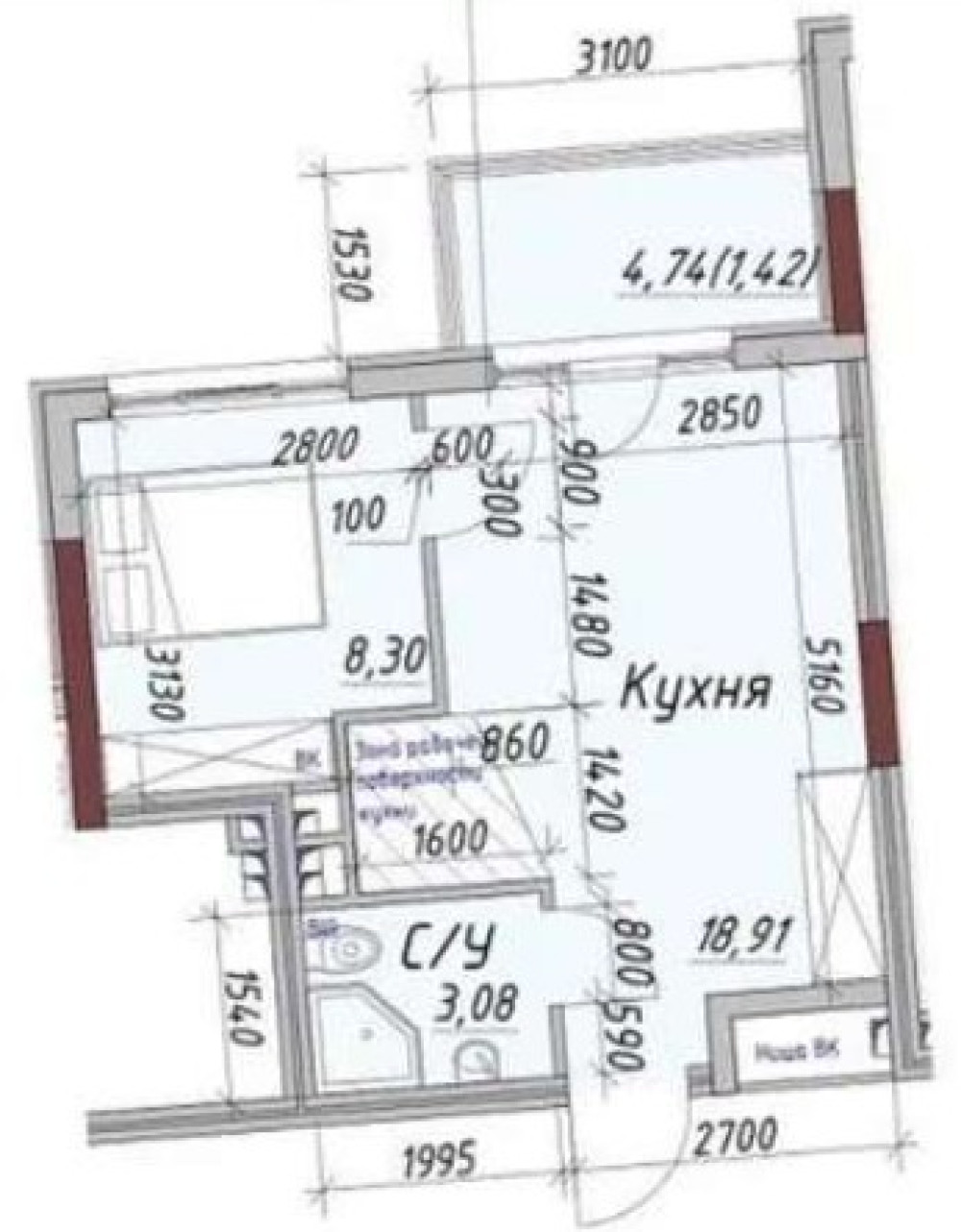 - Площадь: 32/15/18 м²