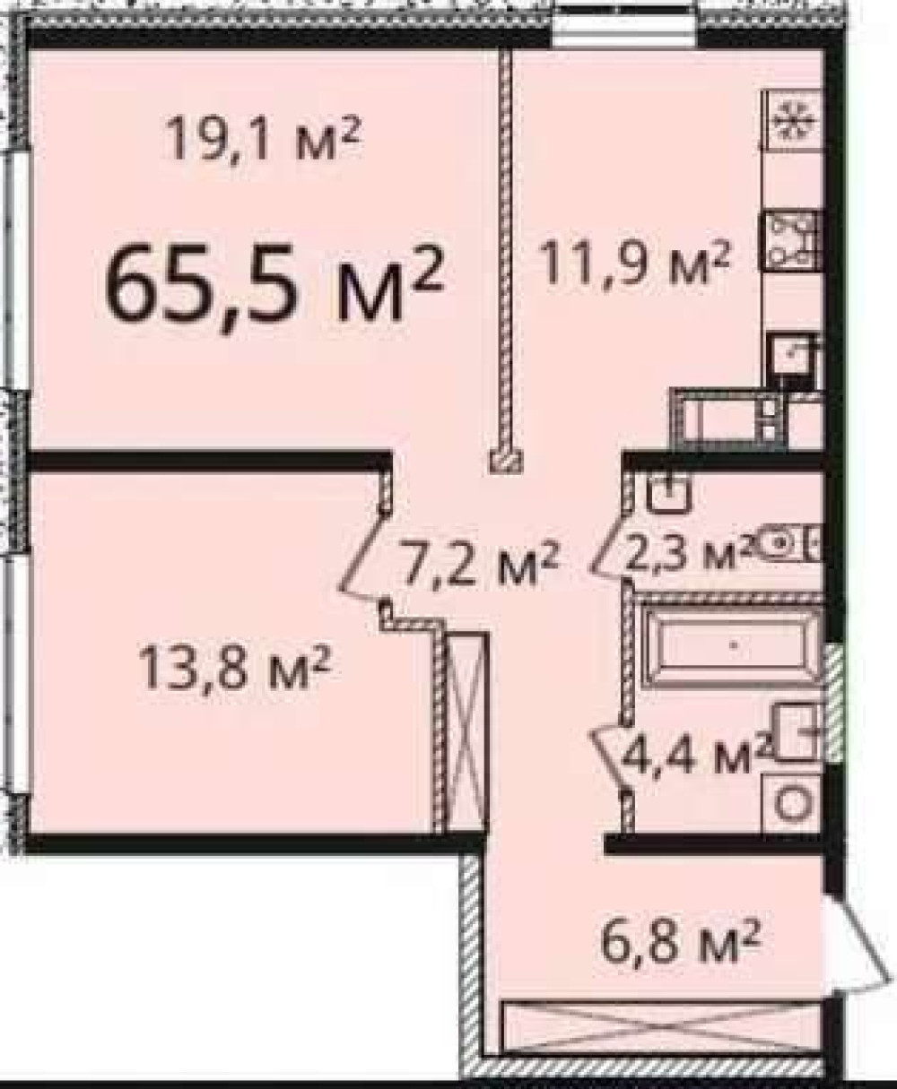 - Площадь: 66/35/12 м²