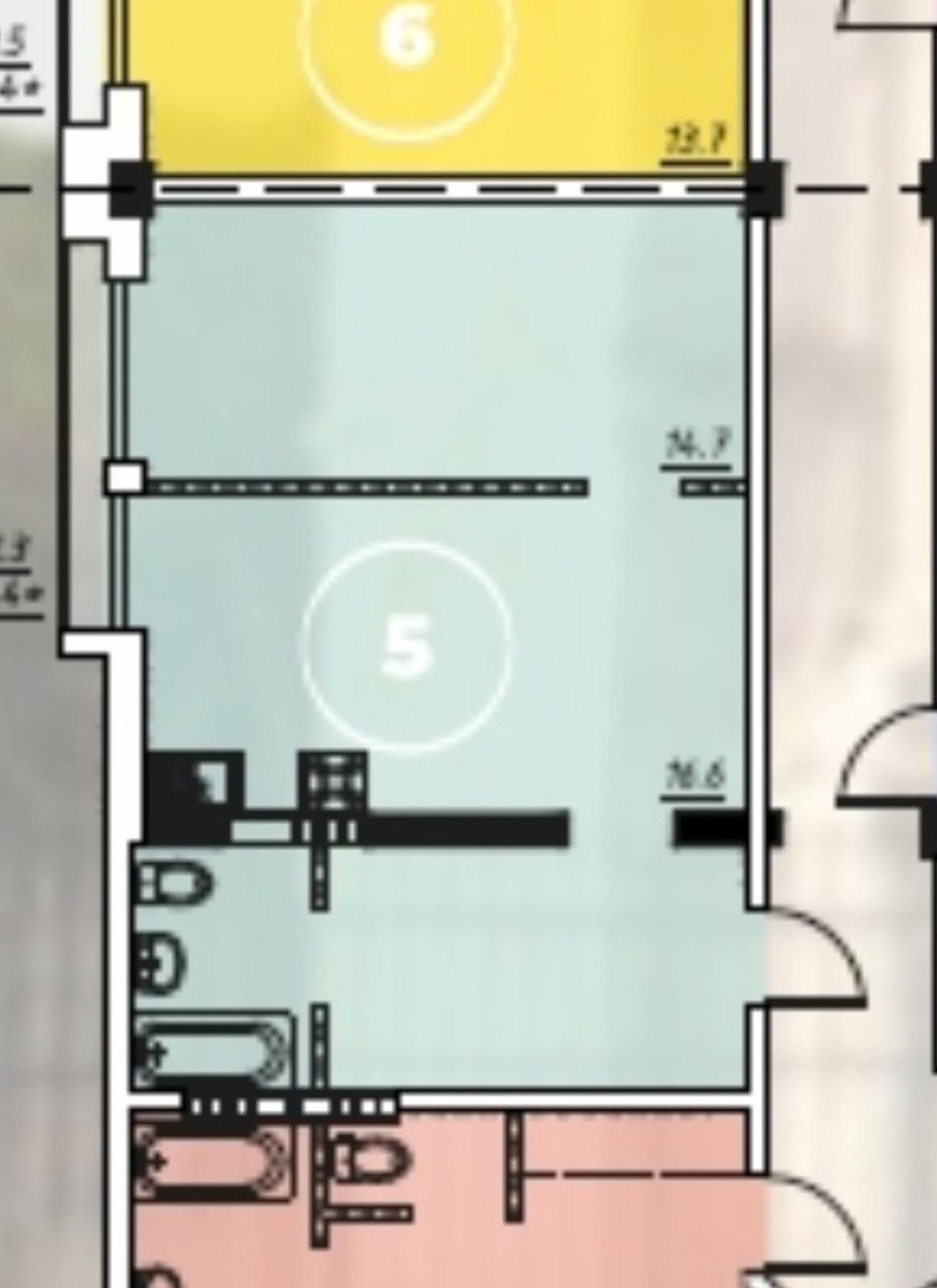 - Площадь: 46/31/12 м²