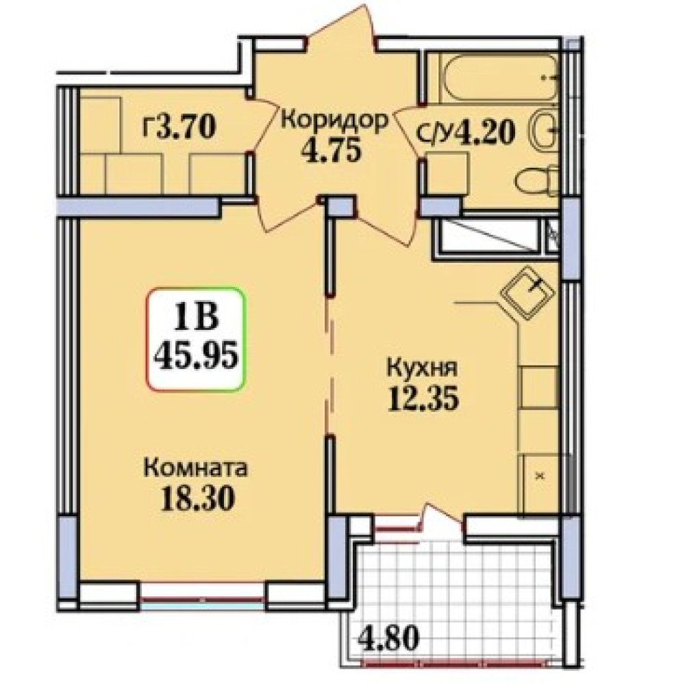 - Количество комнат: 1