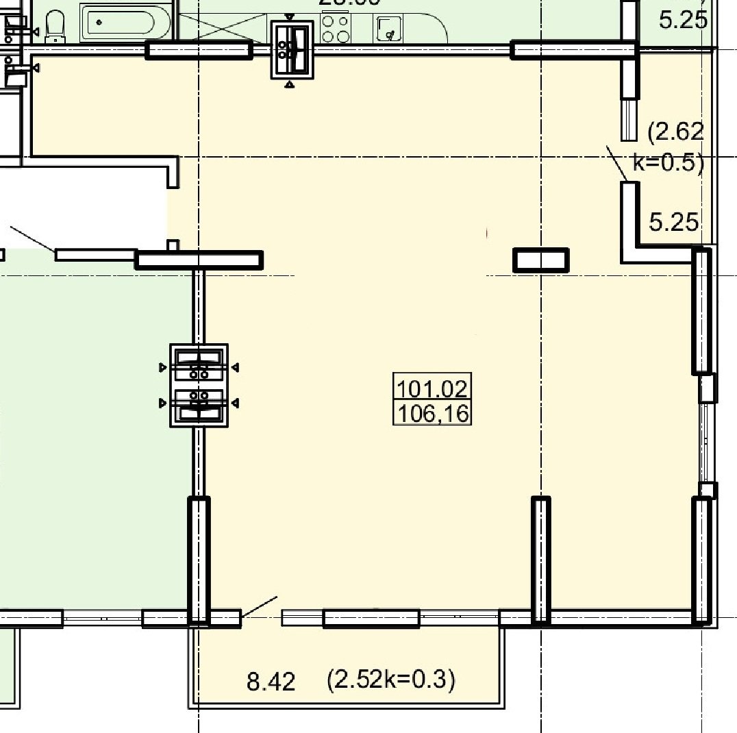 - Площадь: 106/60/25 м²