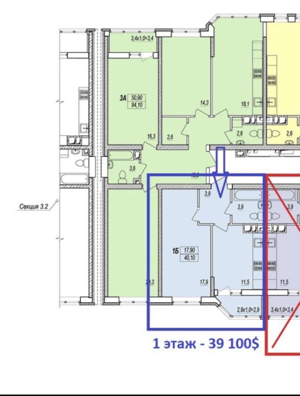 - Площадь: 40/18/12 м²