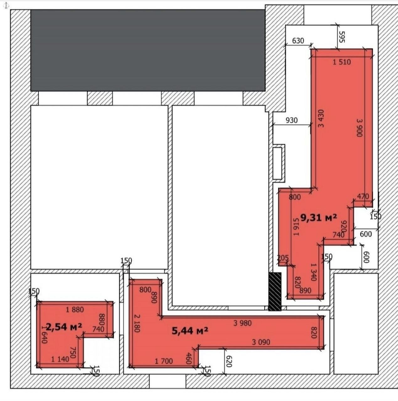 - Площадь: 64/31/16 м²